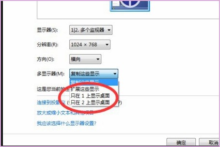 10、扩张模式是显示1和2同时使用,但不能复制模式,例如,设置显示1,您可以拖放1-2显示的内容,或拖放2比1的内容,两个显示器开关。