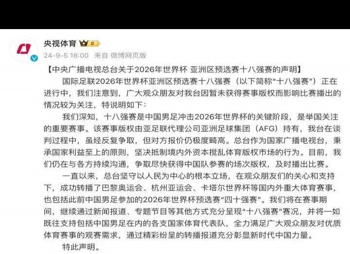 为什么央视不转播国足18强赛?