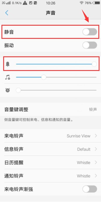 一、进入手机设置--声音--关闭静音,并将铃声音量调大。