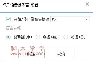 点击设置,可以进入语音悬浮框设置,如下图所示,可以设置“开始/停止录音快捷键”以及语言选择: