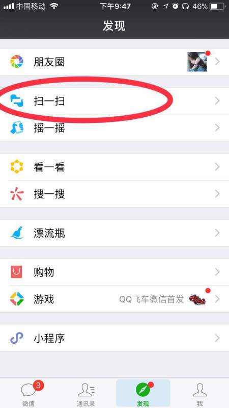 6、在新的手机上,点发现,点击扫一扫进行扫描上述二维码即可
