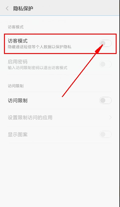 打开设置-点击其他高级设置-点击安全和隐私-点击隐私保护-开启访客模式。