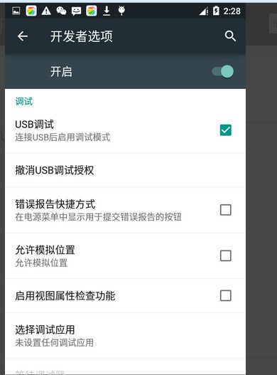 5、进入开发者选项,勾选“USB调试”即可