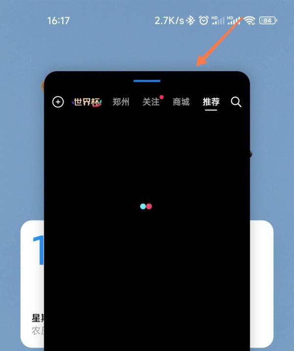 调出小窗应用入口从桌面底部向上滑动,进入任务管理界面(即多任务卡片视图)。