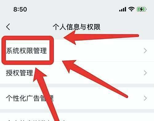 进入微信个人信息与权限页,打开“系统权限管理”页面:此步骤是开启权限管理的基础入口,通过该页面可集中管理微信在系统层面的各项权限设置。