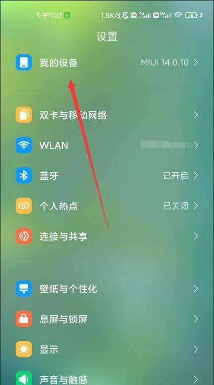 第二步:进入我的设备页面在设置菜单中滑动查找并点击我的设备选项,该页面集中显示设备基础信息。