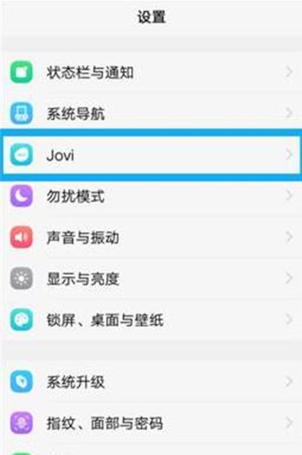 2、接着,在设置页面里,找到jovi,并点击打开,如下图所示: