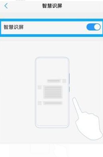 4、进入以后,点击右边的滑槽,将圆点设置为打开,即可完成vivo X21手机智慧识屏开启,如下图所示: