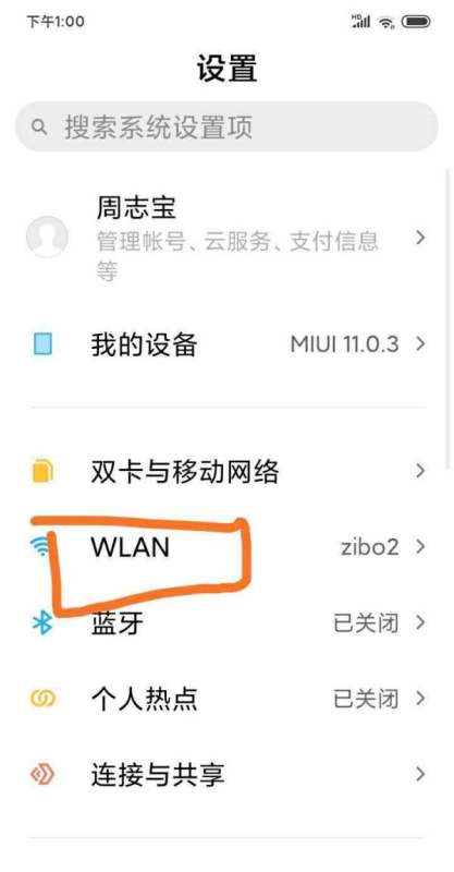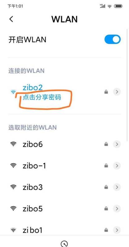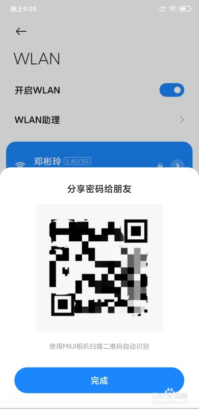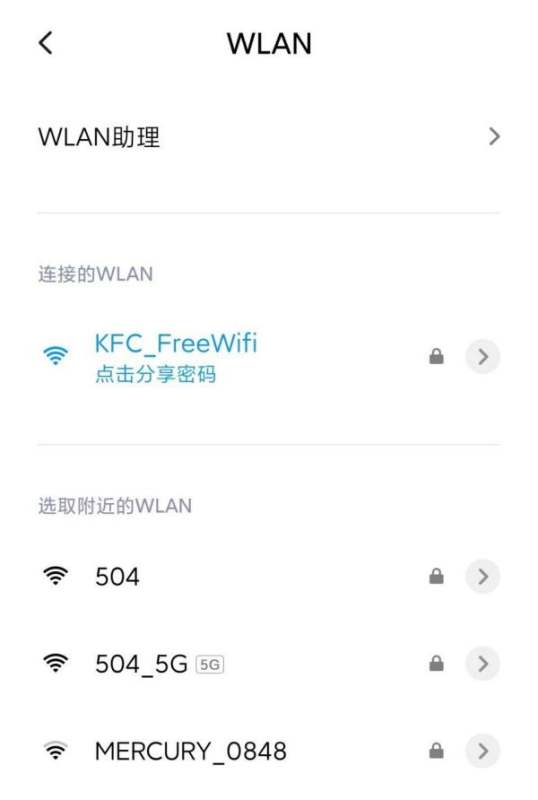进入WLAN设置界面:打开小米手机的“设置”,选择“WLAN”选项,点击进入后找到当前已成功连接的wifi名称并点击。此时手机屏幕会显示该wifi的二维码信息,使用手机截图功能将此二维码保存至相册。
