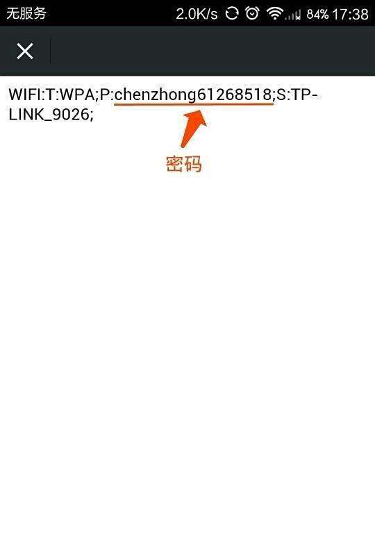 S:后至分号前的字符为WiFi名称。记录密码后即可分享给他人使用。