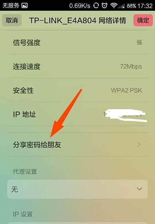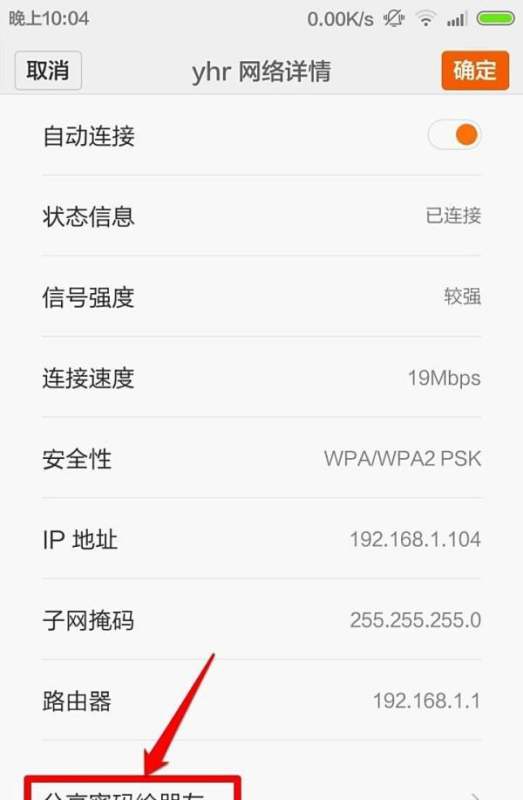 步骤1:进入WiFi设置并生成二维码点击手机【设置】-【WLAN】,选择已连接的WiFi网络,点击右侧箭头进入详情页,选择【分享密码给朋友】。此时屏幕会显示一个包含WiFi信息的二维码。
