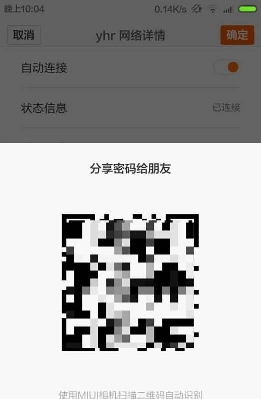 非小米手机用户:通过微信或其他扫码工具扫描二维码,页面会显示WiFi账号和密码。