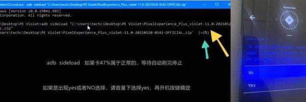 双击启动BAT文件,输入adb sideload romleyuan.zip回车,程序将自动开始刷机。