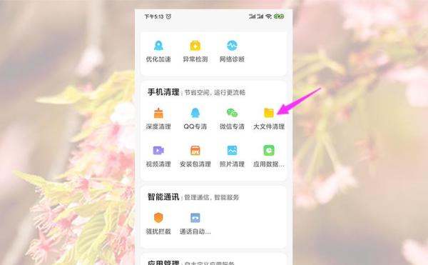 想要删除小米手机中其他大文件占用的空间,需要在手机管家的垃圾清理中进行设置,以下是具体的操作步骤: