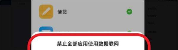 关闭所有应用联网:点击列表顶部的【】图标,可一键禁止所有应用使用移动数据或WiFi。