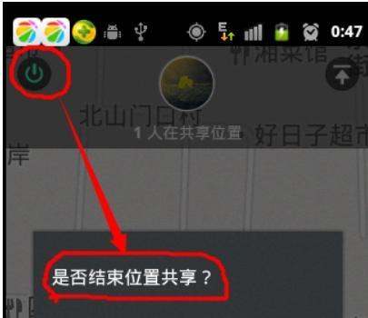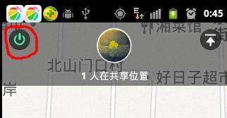 找到关闭按钮:在位置共享界面中,手机屏幕最上方左侧有一个电源标识的按钮,此按钮即为关闭共享位置的控制按钮。