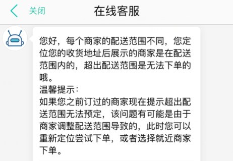 如果你之前订过的商家现在提示已经超出配送范围而无法预订,该问题就是由于商家调整了配送范围而导致的,此时就要重新定位尝试下单,或者选择就近商家下单了。