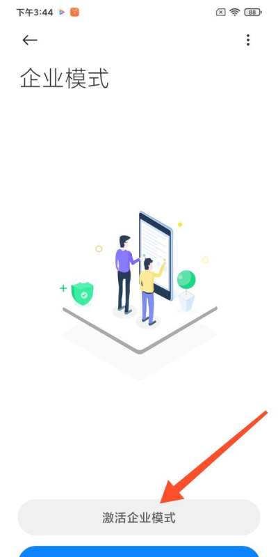 完成激活操作在企业模式界面下方,点击“激活企业模式”按钮。系统将自动完成配置,激活后手机会进入企业管理模式,限制部分功能并启用管理策略。