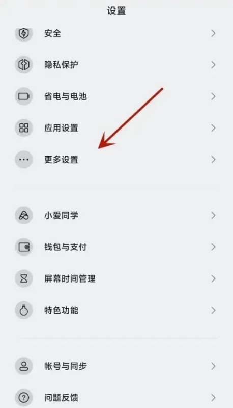 进入更多设置选项在小米手机设置页面中,选择并点击“更多设置”选项。此步骤是进入企业模式功能的前置入口。