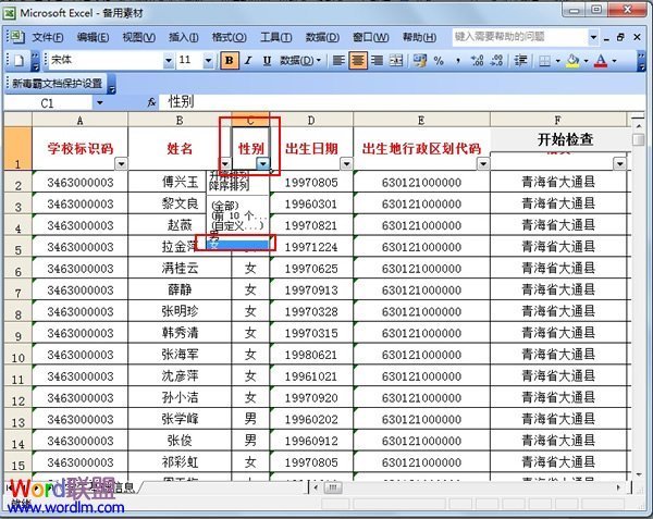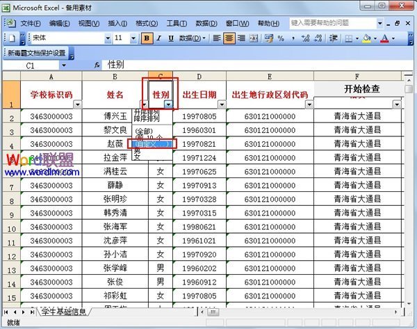 2.弹出“自定义自动筛选方式”对话框,在“性别”下面的条形框中选择“包含”选项,在右侧的条形框中选择“女”,或者自行输入“女”,最后单击“确定”按钮即可完成筛选。