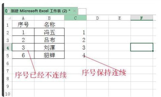 在excel中怎么让自动排列的序号保持连续,在删除一行后?