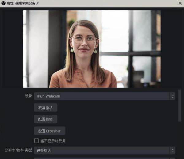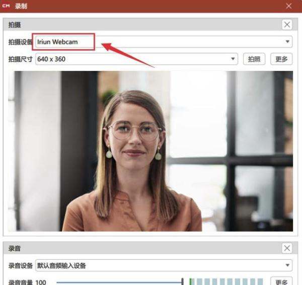 在需要使用摄像头的软件中(如CourseMaker或OBS),选择“iriun webcam”作为摄像头设备。