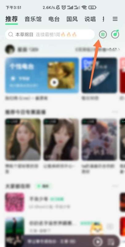 进入QQ音乐页面:打开QQ音乐应用,在首页右上角找到并点击【免】字图标。