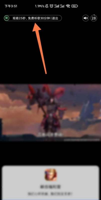 观看视频25秒:点击后进入视频页面,系统会提示观看视频以获取免费听歌时间。此时需保持视频播放至少25秒,期间可正常浏览内容。