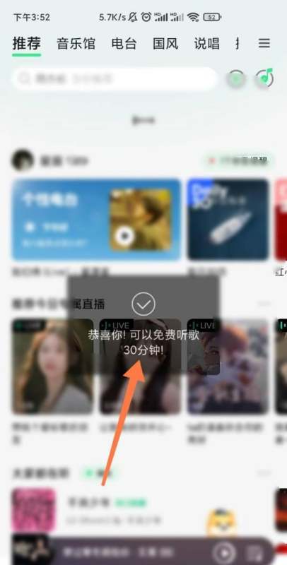 QQ音乐怎么领取30分钟免费听歌
