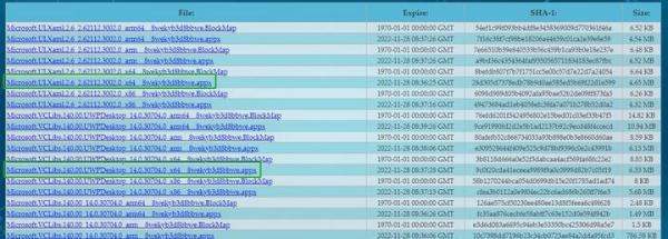 下载依赖包:在解析结果中查找绿色框标注的 .appx文件(如Microsoft.VCLibs.140.00.UWPDesktop)。