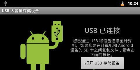 3、点击“打开USB存储设备”,会有个提示,大概意思是SD卡的程序将会停止。点“确定”便可。