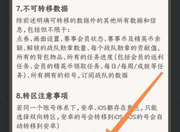 需要注意的是,在转区过程中,有部分数据无法转移,包括但不限于点券、画面设置、赛事会员状态、赛事币及精英币余额、解锁的战队勋章数量、每个战队勋章的贡献值、背包中的所有物品、任务进度、已拥有的称号及战队订阅数据。