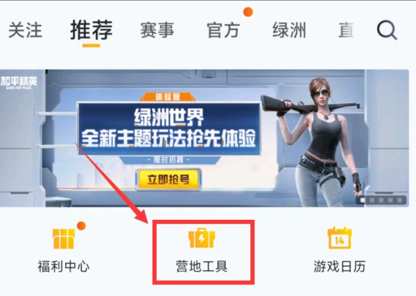 1、首先打开【和平营地】应用,找到并点击【营地工具】选项。