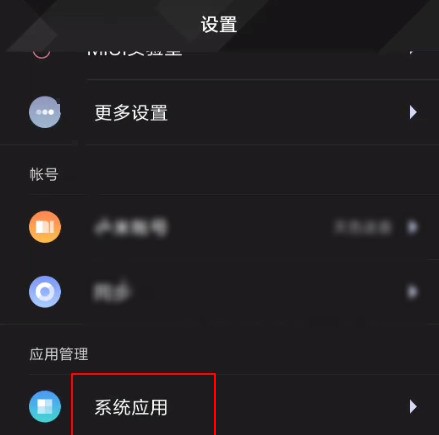 2、 进入设置后下滑页面选择系统应用。