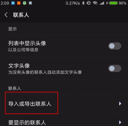 4、进入联系人界面,选择导入或导出联系人。