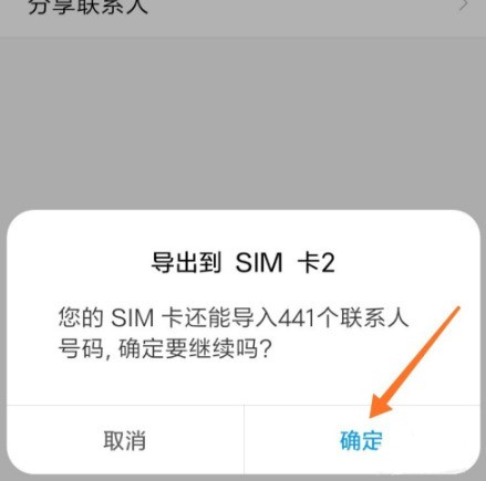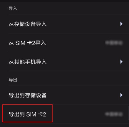 5、在下图中选择导出到sim卡2。