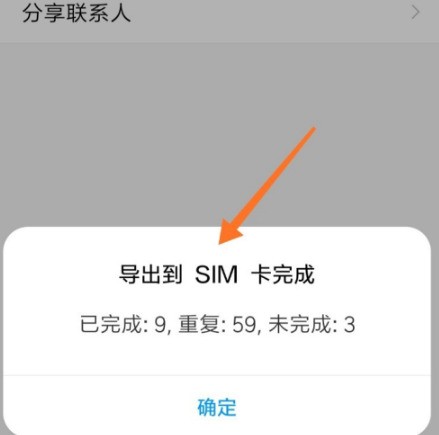 9、联系人导出到sim卡完成,之后只需要把sim卡装入新手机即可使用原有的通讯录了。