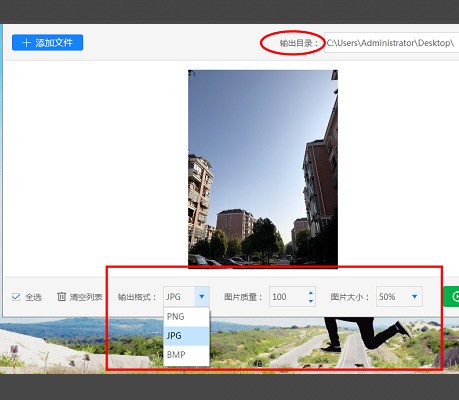 4,随后是转换图片格式的修改以及画质,大小,顺便点击右上角的“输出目录”换一下保存位置,以便找到,点击右下角的“开始转换”即可;