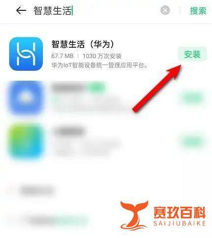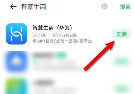 在搜索框中输入“智慧生活”,点击安装输入关键词后,系统会显示相关应用列表,找到“华为智慧生活”并点击右侧的“安装”按钮,等待下载完成即可使用。
