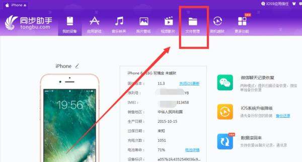 打开管理软件:启动同步助手(或其他iPhone管理软件),进入主界面。
