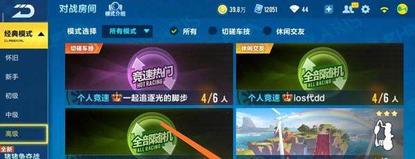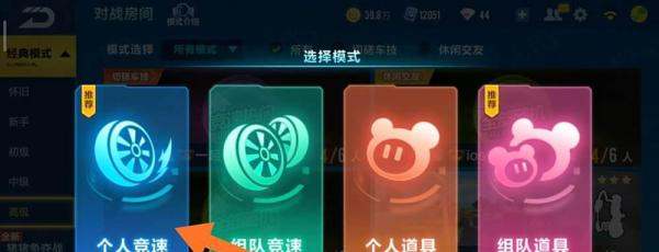选择房间类型:在弹出的房间类型选项中,选择个人竞速模式(也可根据需求选择其他模式)。