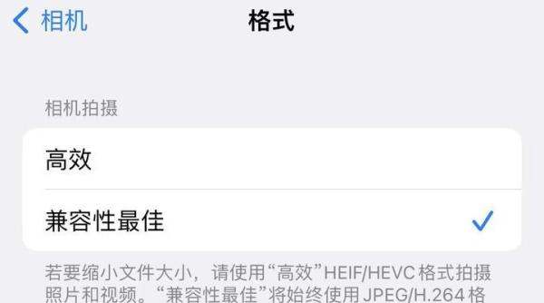 修改 iPhone 拍摄设置:在 iPhone 的“设置”-“相机”-“格式”中,选择“兼容性最佳”(生成 H.264 编码的 MOV 文件)。