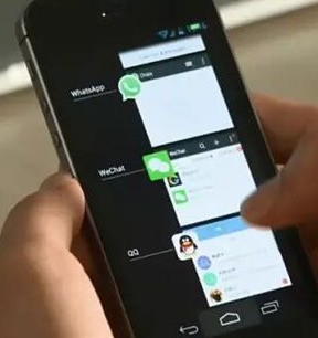 打开安卓App查看后台程序,安卓版的后台就是这样垂直排列的。