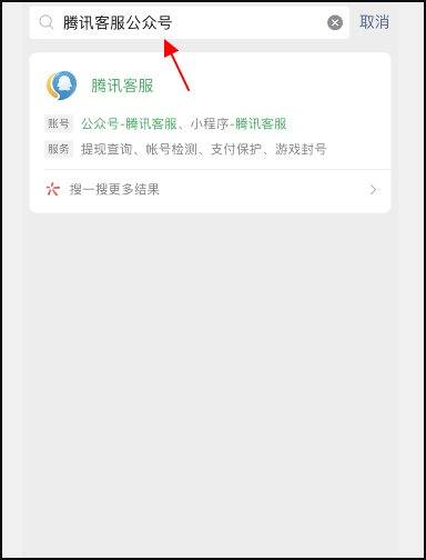 3、接下来在上面点击搜索腾讯客服公众号。