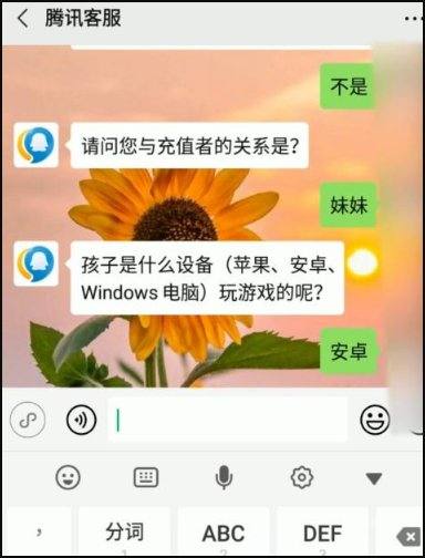 4、接下来在进入后在对话框里发送王者荣耀退款。