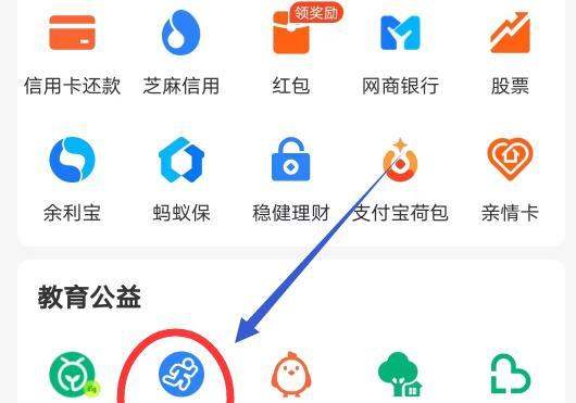 第一步:打开支付宝并进入运动功能打开支付宝首页,在功能选项中找到教育公益分类,点击进入后选择运动功能。