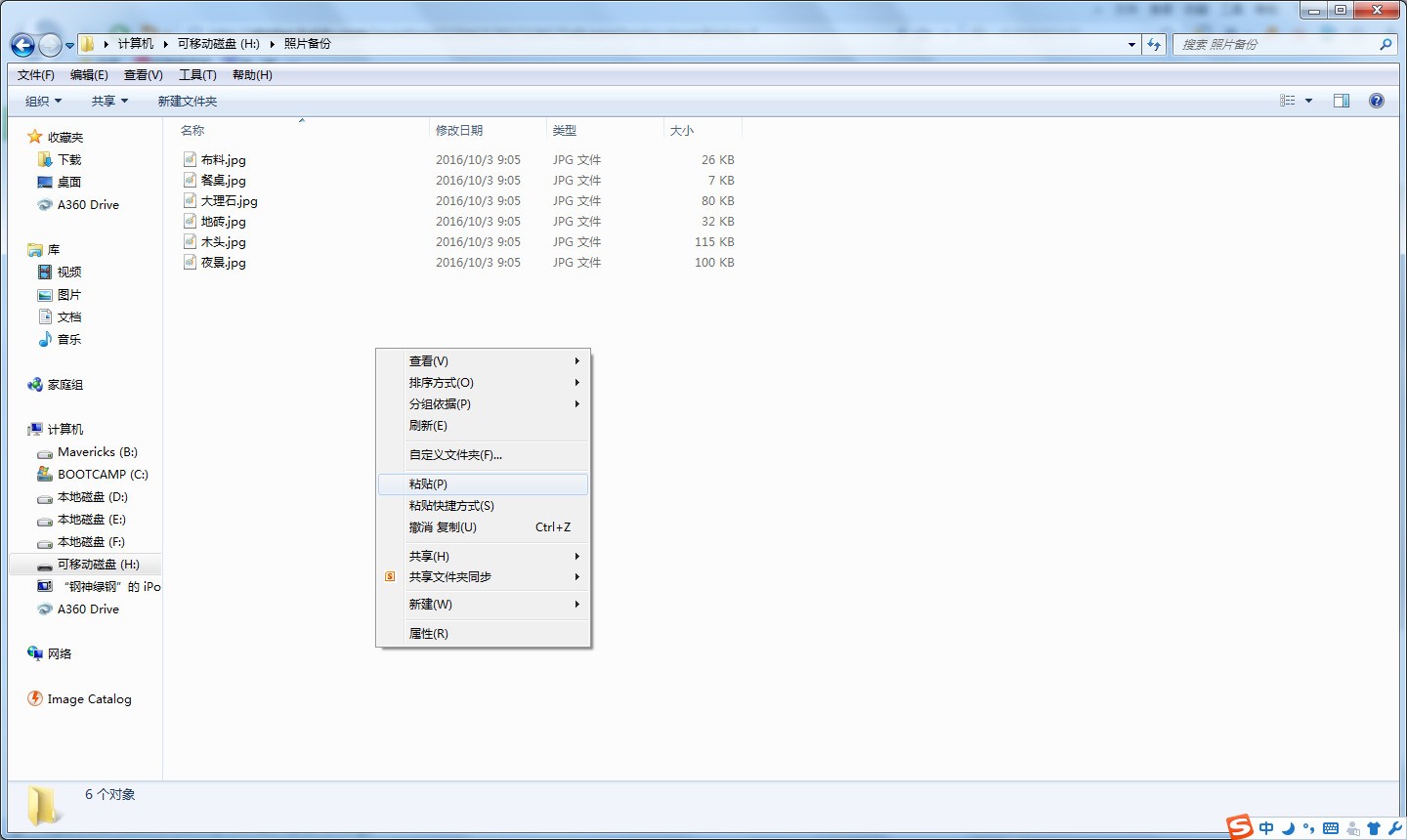 5. 将电脑上复制的照片或视频文件,复制到U盘中。