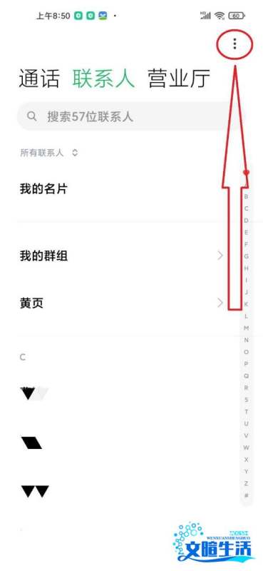步骤3:打开更多设置菜单在联系人页面右上角点击“更多”按钮(通常为三个竖点或齿轮图标),展开功能菜单。
