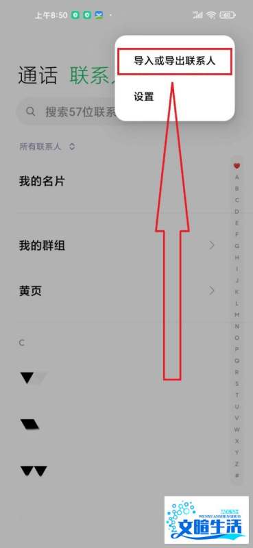 步骤4:选择导入/导出功能在菜单中点击“导入或导出联系人”选项,进入数据迁移设置页面。