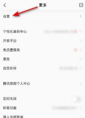 第二步:进入设置页面在弹出的菜单列表中,找到并点击“设置”选项,进入QQ音乐的详细设置界面。
